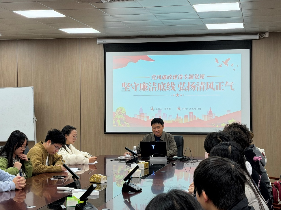 为切实增强本科生党员纪律规矩观念,2025年12月10日中午,申博sunbet官网董明刚院长在07424为学院本科生第一党支部全体党员讲授了一堂深刻生动的廉政专题党课。