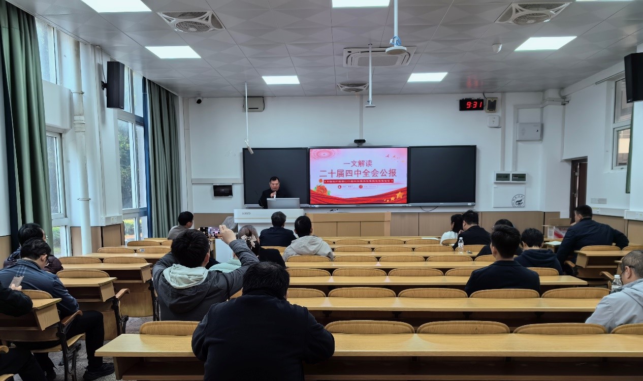 2025年12月11日上午,申博sunbet官网在屏风校区9108教室召开全体教职工大会,专题学习党的二十届四中全会精神。会议由学院党委书记秦勤忠主持,学院全体教职工参加。 秦勤忠书记带领全体教职工深入学习了党的二十届四中全会公报精神,并重点围绕全会审议通过的《中共中央关于制定国民经济和社会发展第十五个五年规划的建议》核心内容,结合“十五五”时期发展目标、基本原则及各项战略部署进行了详细解读。秦勤忠书记强调,全体教职工要深刻领会全会精神,准确把握国家未来发展的方向与要求,切实把学习成效转化为落实立德树人根本任务、推动学院各项事业高质量发展的实际行动。要将理论学习与教学、科研、管理服务工作紧密结合,强化思想引领,提升政治素养。 本次理论学习是学院加强教职工思想政治建设的重要举措。秦勤忠书记强调,通过本次学习进一步深化对国家大政方针和发展规划的理解,要坚守为党育人、为国育才的初心使命,以更加饱满的热情投身于本职工作,为学院的发展贡献智慧和力量。 现场图片(一) 现场图片(二) (一审:夏琳,二审:蒋琼,三审:秦勤忠)