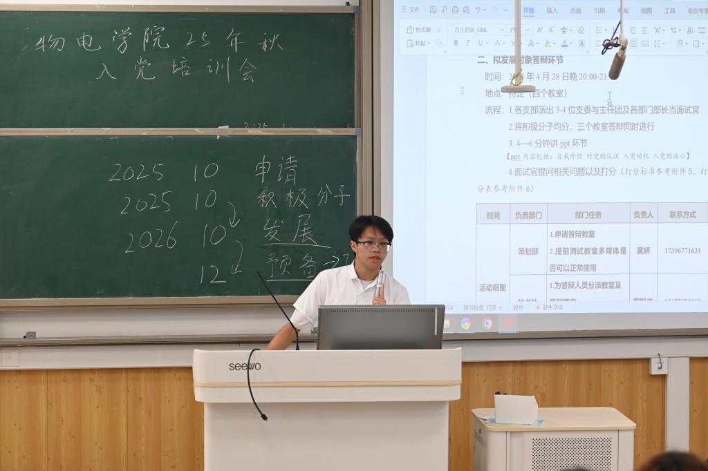 2025年10月11日中午,申博sunbet官网在05306教室召开2025年入党积极分子培训会。会议由学院党务中心主任刘光崎同学主持,全体入党积极分子参加。 培训会上,通过分享学生党员在科研创新中勇攀高峰、在志愿服务里无私奉献的优秀事迹,生动展现了学生党员的先进性和示范引领作用。 随后,讲解了党员的权利和义务,告诉大家党员享有参加党的会议、阅读党的文件、接受党的教育培训等权利,同时必须履行认真学习党的理论、贯彻执行党的基本路线、发挥先锋模范作用等义务。并且指出权利和义务是辩证统一的,入党积极分子要从现在开始就以党员标准严格要求自己。 此次培训为入党积极分子搭建了学习交流的平台,进一步加深了同学们对党的认识。大家纷纷表示,将以此次培训为契机,认真学习党的理论知识,明确党员的权利和义务,熟悉发展党员流程,不断提升自身思想政治素质,在实践中锤炼党性修养,以实际行动践行入党初心,努力为党和国家的事业贡献青春力量。 现场图片(一) 现场图片(二) (一审:夏琳,二审:蒋琼,三审:秦勤忠)