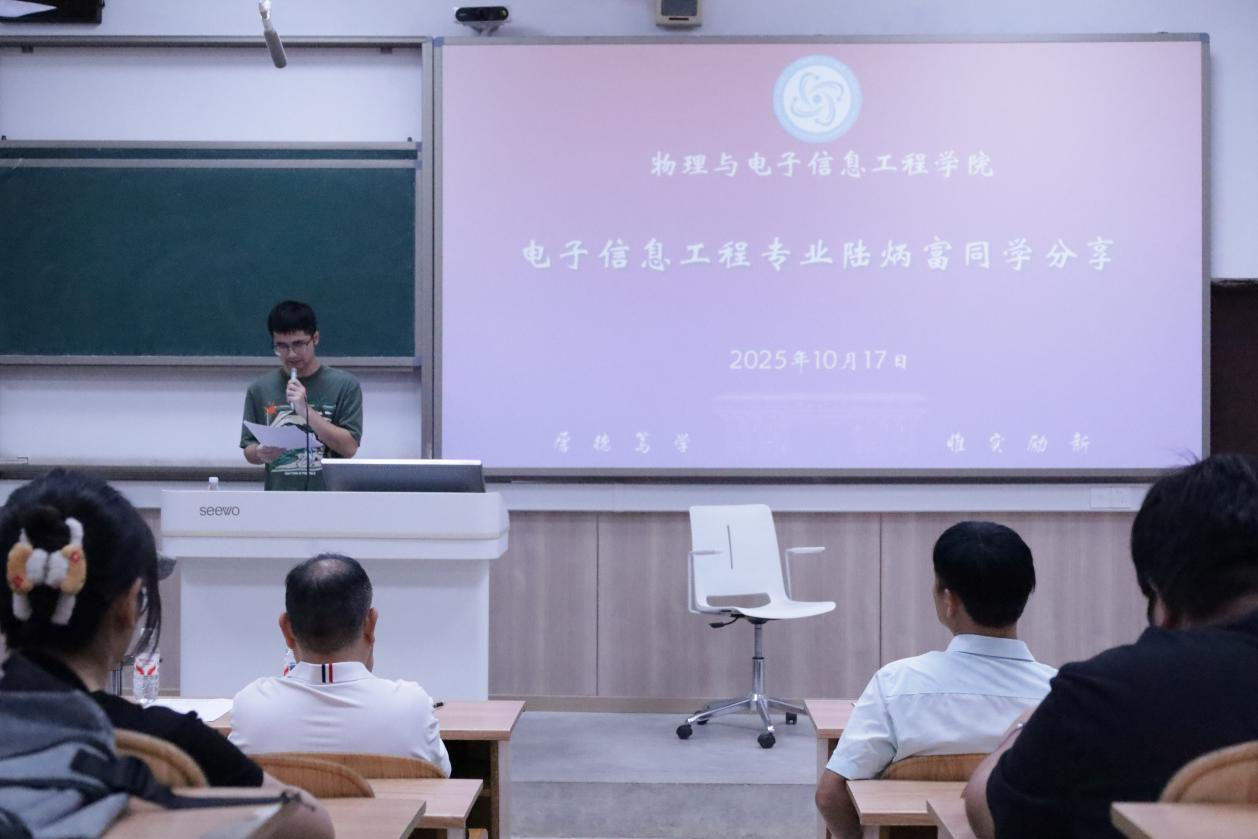 在经验分享环节,电子信息工程专业已签约毕业生陆炳富同学结合自身求职经历,从简历撰写、面试准备、项目介绍、心态调整等方面作了生动翔实的分享。他以亲身经历鼓励同学们主动出击、积极尝试,在实践中不断总结与提升,最终实现从“求职焦虑”到“自信从容”的转变。