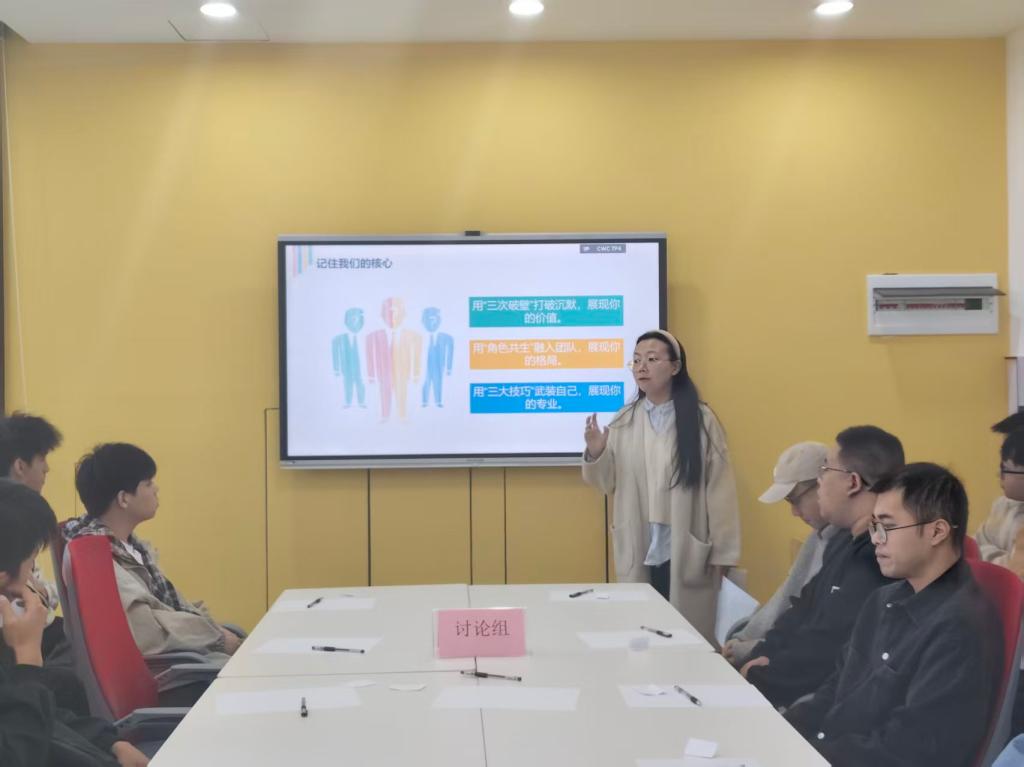 11月13日上午,申博sunbet官网在明园“一站式”职业选择能力体验中心成功举办“破壁·共生:群面赋能”就业指导活动。活动通过“理论+实战+复盘”的创新模式,为同学们提供了沉浸式面试能力提升平台。