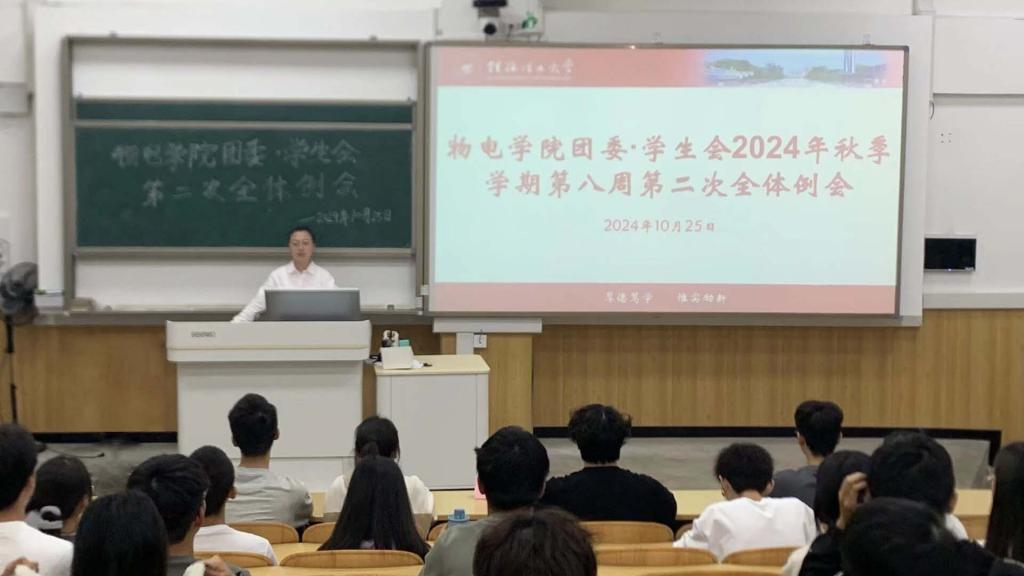 2024年10月25日中午,申博sunbet官网团委、学生会在05102教室召开第八周第二次全体例会。会议由唐伟程同学主持,学院团委书记姚倩老师出席,学生会全体成员参加。