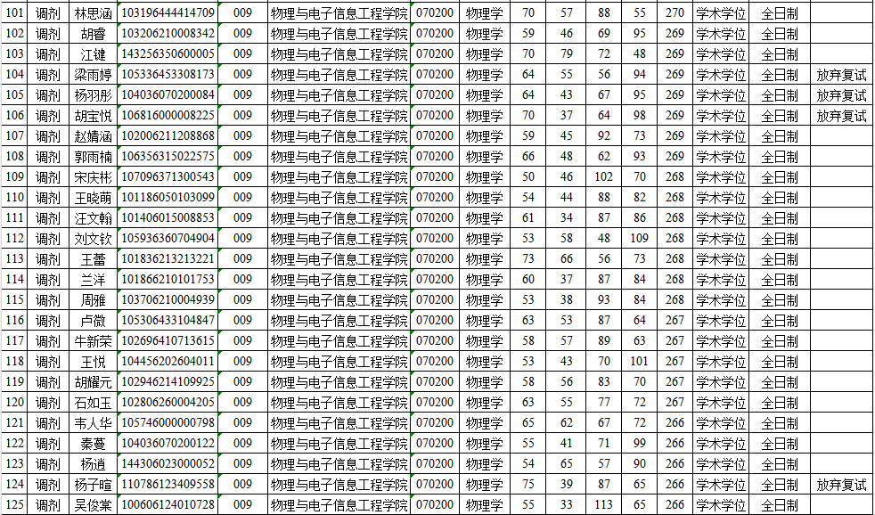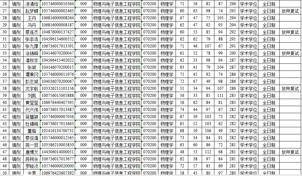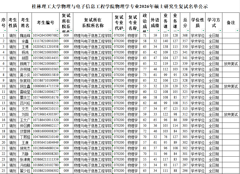 申博sunbet官网申博sunbet官网物理学专业2026年硕士研究生复试名单公示