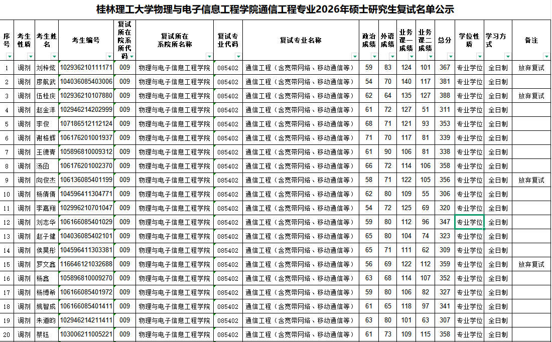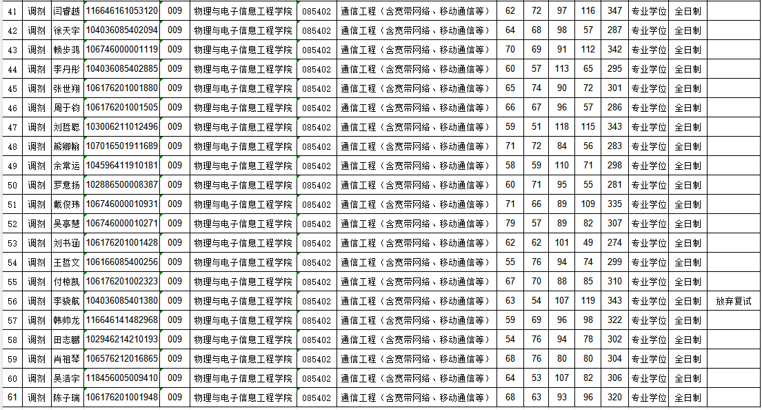 申博sunbet官网申博sunbet官网通信工程专业2026年硕士研究生复试名单公示